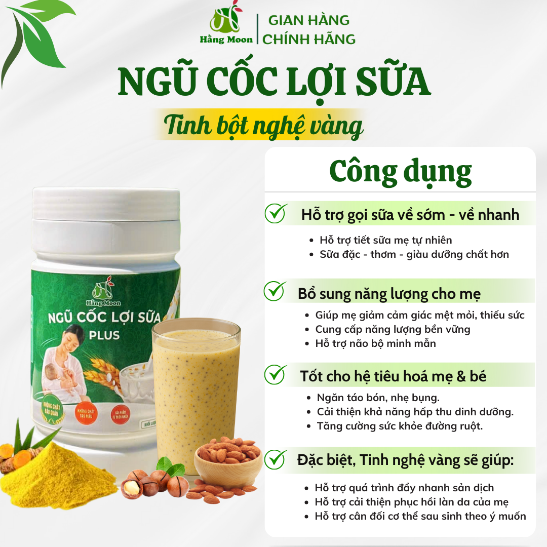 NGŨ CỐC LỢI SỮA CAO CẤP Mix Tinh Bột Nghệ Vàng (HẰNG MOON)