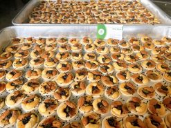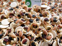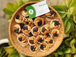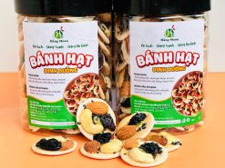 Bánh đồng tiền, hạt điều, hạnh nhân, bí xanh, mè đen, mạch nha.